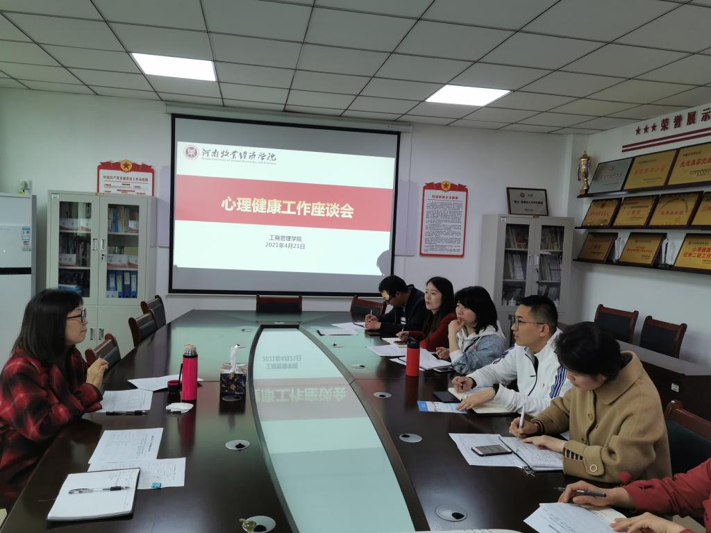 4月21日下午,ok138cn太阳集团古天乐心理健康工作座谈会在教学楼412会议室举行。座谈会由院心理专干贾雪主持,校大学生心理健康教育中心陈莉出席,学院全体辅导员老师参加了本次座谈。