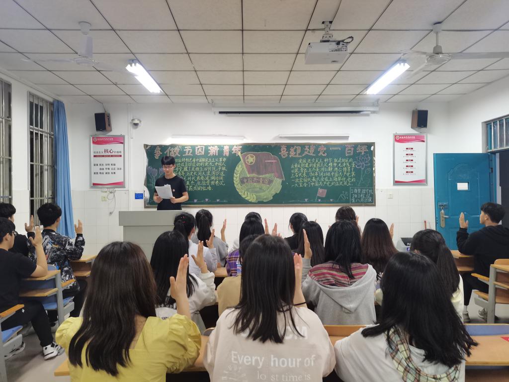 为弘扬五四精神,宣传党史教育,引导广大青年以良好的精神面貌献礼建党100周年和五四运动102周年,ok138cn太阳集团古天乐于4月29日晚开展以“争做五四新青年,喜迎建党一百年”为主题的团课,参加此次团课的班级有20工程01、20工程02、20工商01、20工商02、20国商02。