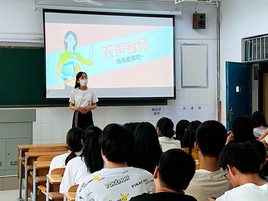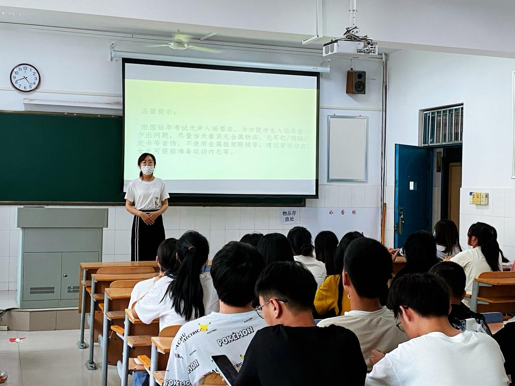 其次席老师给同学们讲解了“无声入场”的要求,使专升本考生提前熟悉了“无声入场”的相关流程以及规则,为学生考试当天顺利入场奠定基础。特别提醒学生在考试期间要做好个人防护,自觉服从考务人员管理。