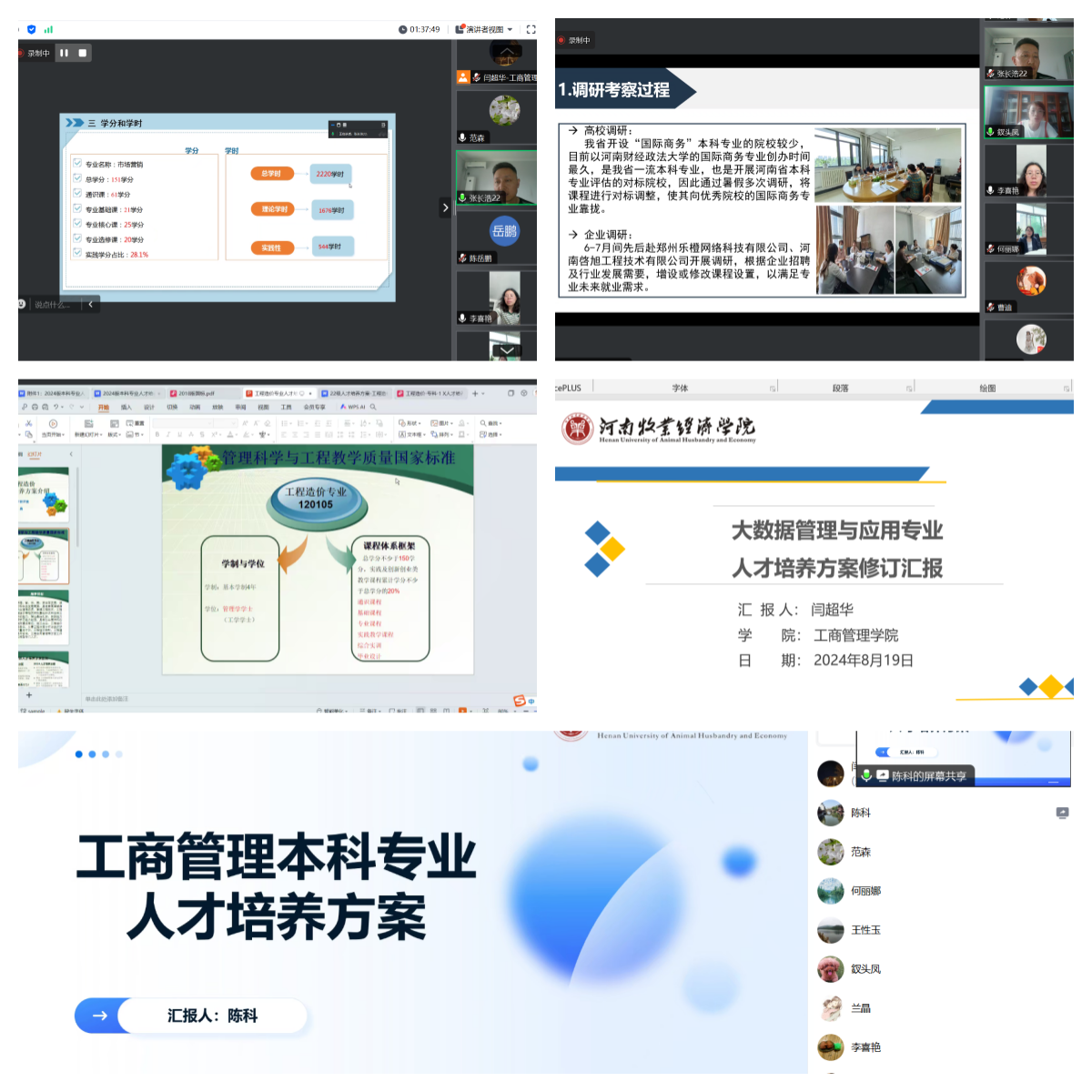 2024年8月19日上午,ok138cn太阳集团古天乐召开2024年人才培养方案线上论证会。参加工商管理类专业论证的专家有河南大学王性玉教授、中南财经政法大学杜鹏教授、海南师范大学李喜艳副教授和河南省连锁协会秘书长陈岳鹏;参加管理科学与工程类专业论证的专家有天津理工大学周驰教授、河南财经政法大学宋素亚副教授和河南东孚科技运营总监白冉。ok138cn太阳集团古天乐院领导班子、各教研室负责人等20余人参加了会议,会议由副院长范森主持。