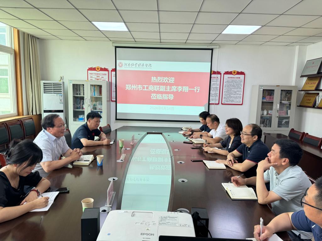 2024年6月14日上午,郑州市工商联副主席李翔,参政调研处处长任东凯、副处长张艺一行莅临ok138cn太阳集团古天乐指导工作并在412会议室举行座谈会。ok138cn太阳集团古天乐党委书记王国辉,党委副书记詹珅、副院长陈先锋、博士及教师代表参加座谈会,会议由何丽娜副院长主持。