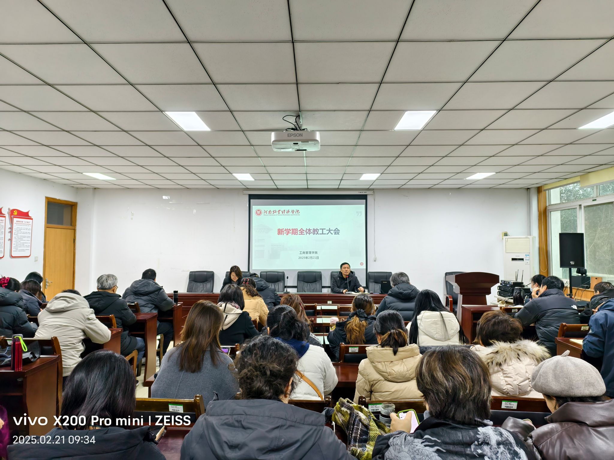会议伊始,何院长首先代表学院领导班子向全体教职工致以新春的问候,并对大家在过去一年为学院发展做出的贡献表示感谢。她强调,新学期伊始,全体教职工要迅速收心归位,以饱满的热情和昂扬的斗志投入到新学期的各项工作中去,为实现学院高质量发展开好局、起好步。