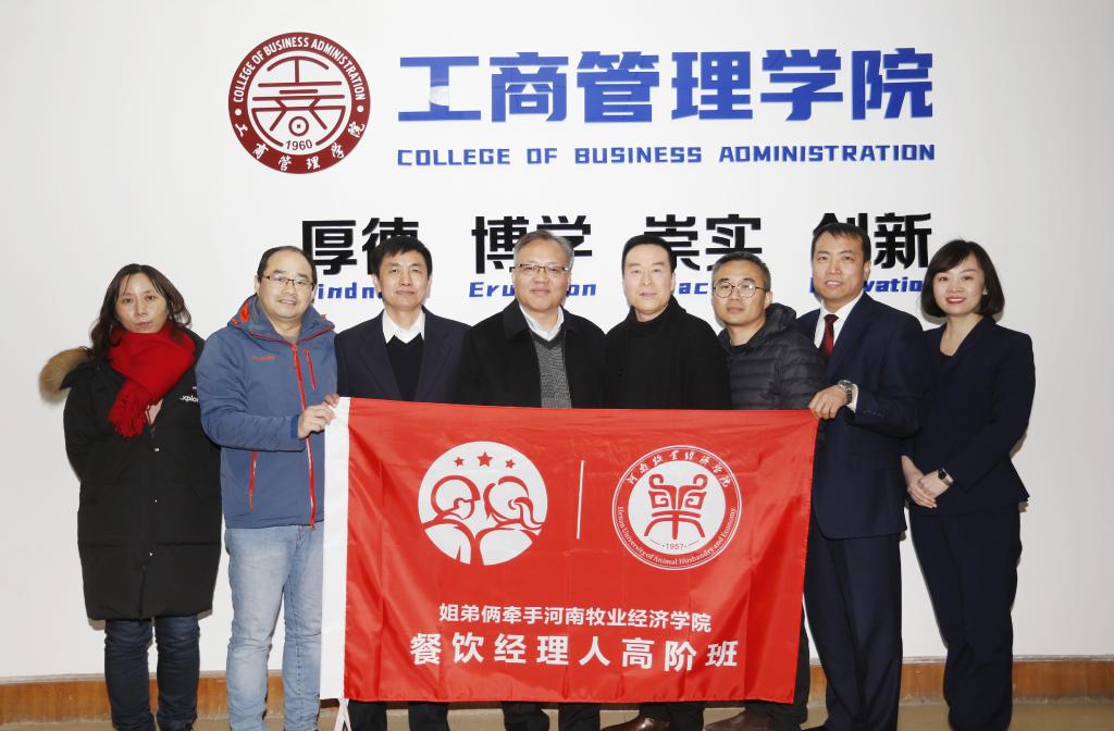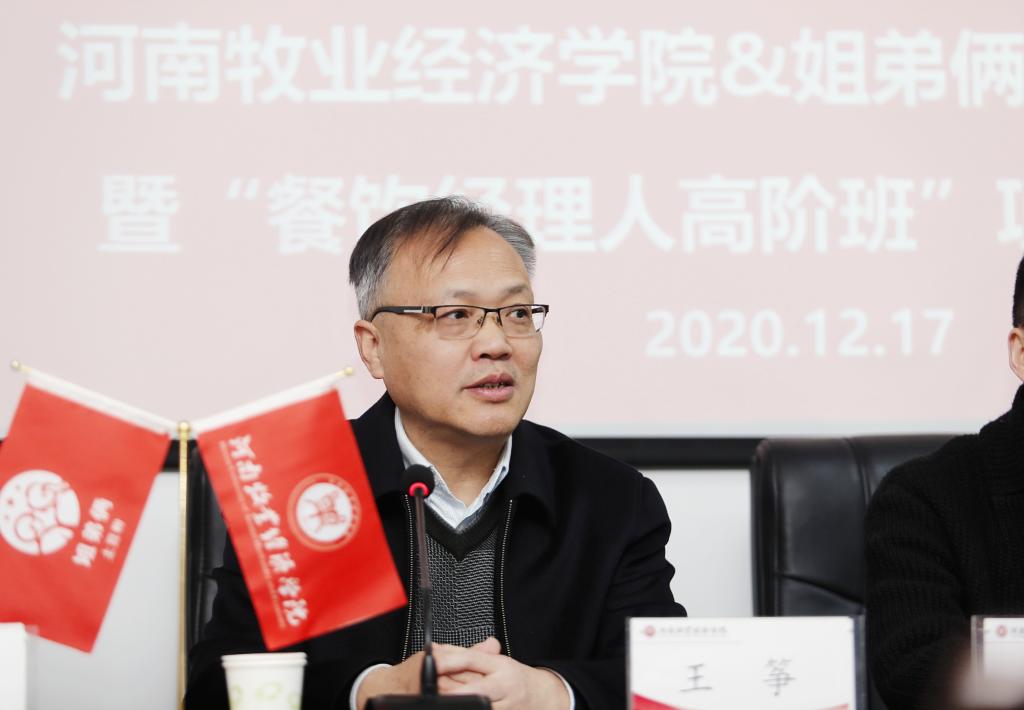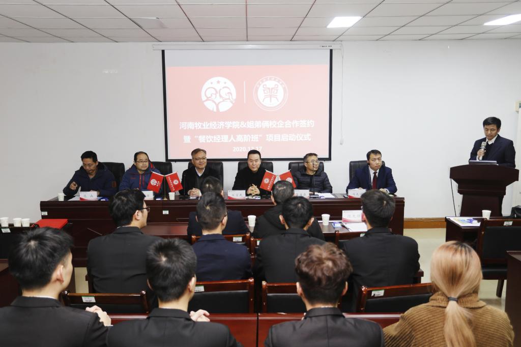 2020年12月17日下午,ok138cn太阳集团古天乐与姐弟餐饮管理有限公司在院227会议室成功举行校企合作签约暨“餐饮经理人高阶班”项目启动仪式。“姐弟俩”品牌创始人、董事长宋宝民、企业顾问、异数商业模式创始人薛海辰、总经理冯太祥、人力资源经理卞伟民,金通源律师事务所律师李鹏辉,工商管理管理学院院长王筝、党委副书记王国辉、副院长陈先锋、范森和学院老师代表,以及高阶班30多位同学出席本次活动。活动由副院长陈先锋主持。