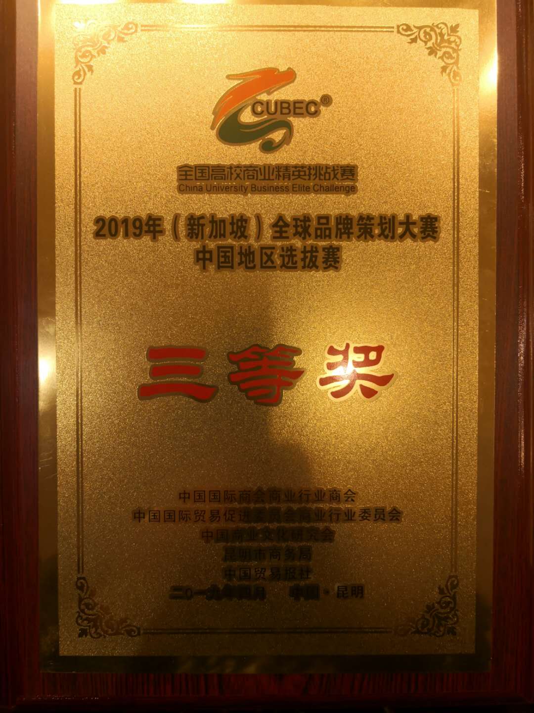 4月26日至28日,2019年(新加坡)全球品牌策划大赛中国地区选拔赛在昆明隆重举行。工商管理学院石华灵、利炜、周倩、王培培四位老师指导的《吉虎礼物品牌策划方案》和《一枚鸡蛋的革命》两支参赛队,经过三个月的精心准备后,历经两天的激烈角逐,从全国100所高校191支队伍和8支留学生队伍中脱颖而出,分别荣获一等奖和三等奖。