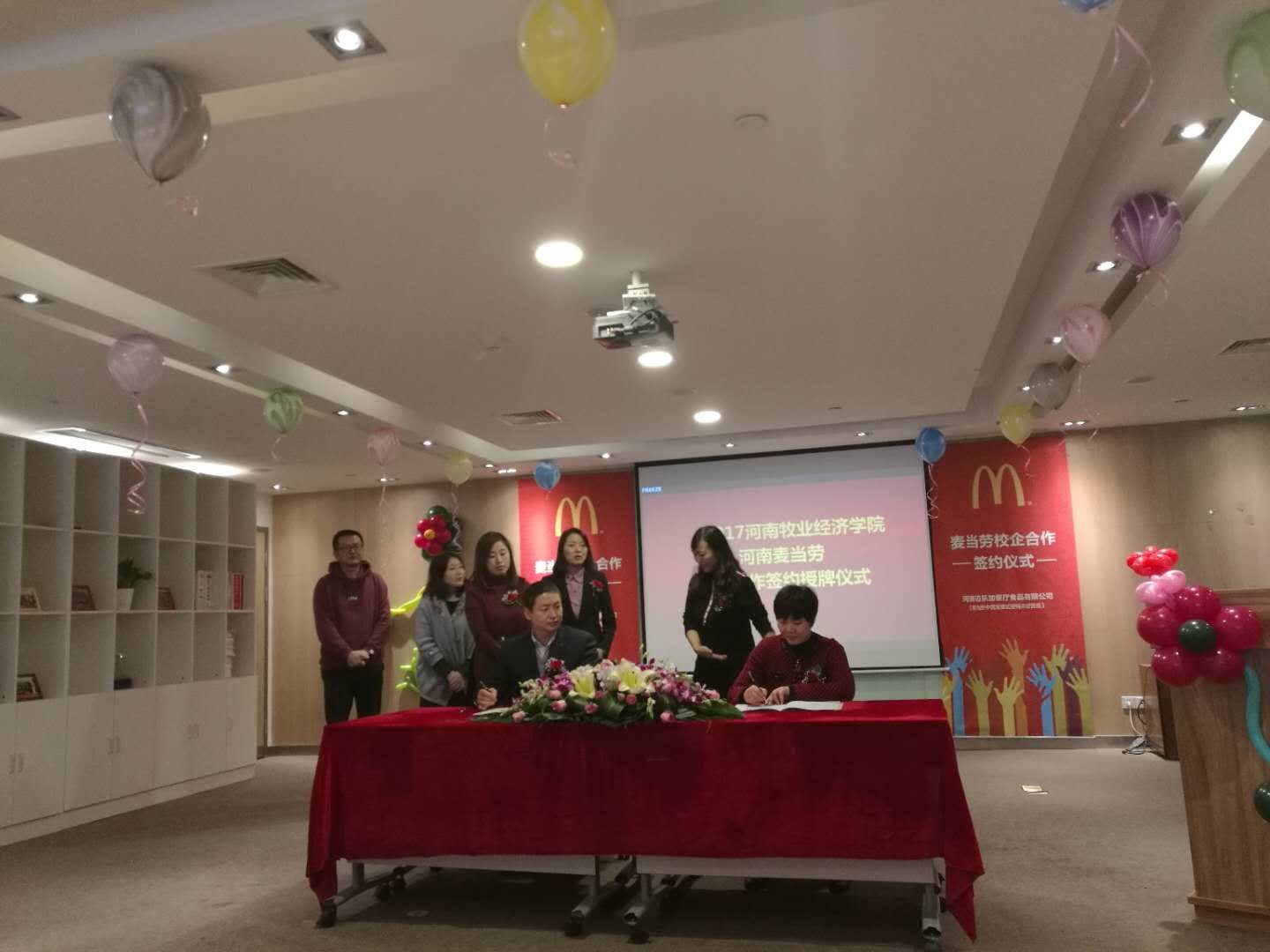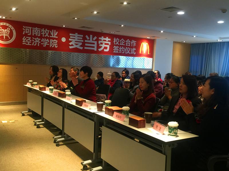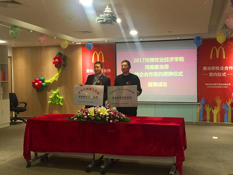 河南麦当劳总经理朱宏政在讲话中指出,自2017年秋季河南麦当劳公司开展与ok138cn太阳集团进行校企合作的洽谈以来,已取得了丰硕的成果,校企合作通过为学生提供勤工助学岗位,建立了“麦苗班”,发挥企业和学校的优势培训资源,为学生提供6-12月的培训计划和领导力课程,帮助学生岗位实习和锻炼,给予学生更多平台训练及发展空间,实现毕业就可能成为麦当劳经理,毕业1年成为餐厅总经理的快速发展计划。麦当劳未来5年的快速发展,会为大学生实习、实训、就业提供更多的发展空间。
