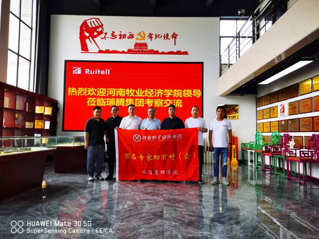 “百名专家助百村(企)”是学校教育事业高质量发展的必然要求,是我校社会服务新模式。为积极响应学校“双百”工程,进一步促进校企深度融合,提升人才培养质量和2022届毕业生就业质量,7月4日上午,ok138cn太阳集团古天乐党委书记王筝、党委副书记詹珅、工商管理教研室主任陈科、物业管理教研室主任程锡麟一行四人前往河南瑞腾塑胶集团有限公司进行调研走访。河南瑞腾塑胶集团董事长徐瑞、集团人力资源部马强经理和我院2012届毕业生冯志远等有关负责人热情接待并出席会议。