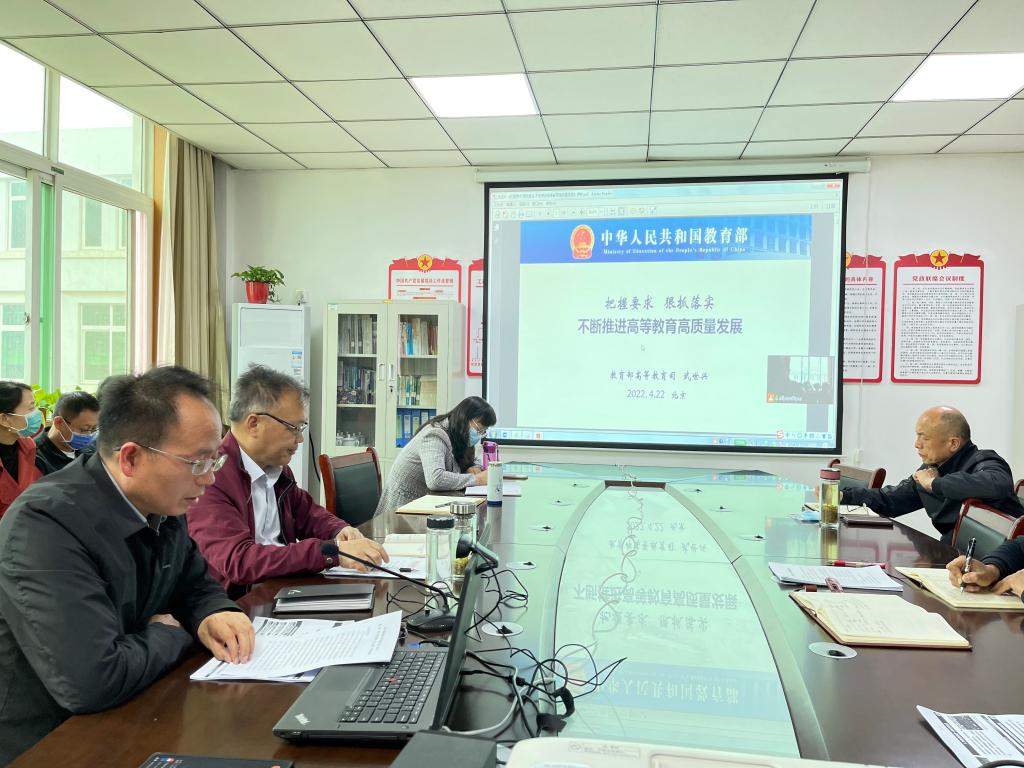 为推进“能力作风建设年”活动深入开展,扎实做好“大学习大培训大练兵大提升”,4月28日下午,ok138cn太阳集团古天乐采取线上线下相结合的方式,组织教职工深入学习教育部高等教育司副司长武世兴的报告——《把握要求狠抓落实不断推进高等教育高质量发展》。院长贾宪军领学。