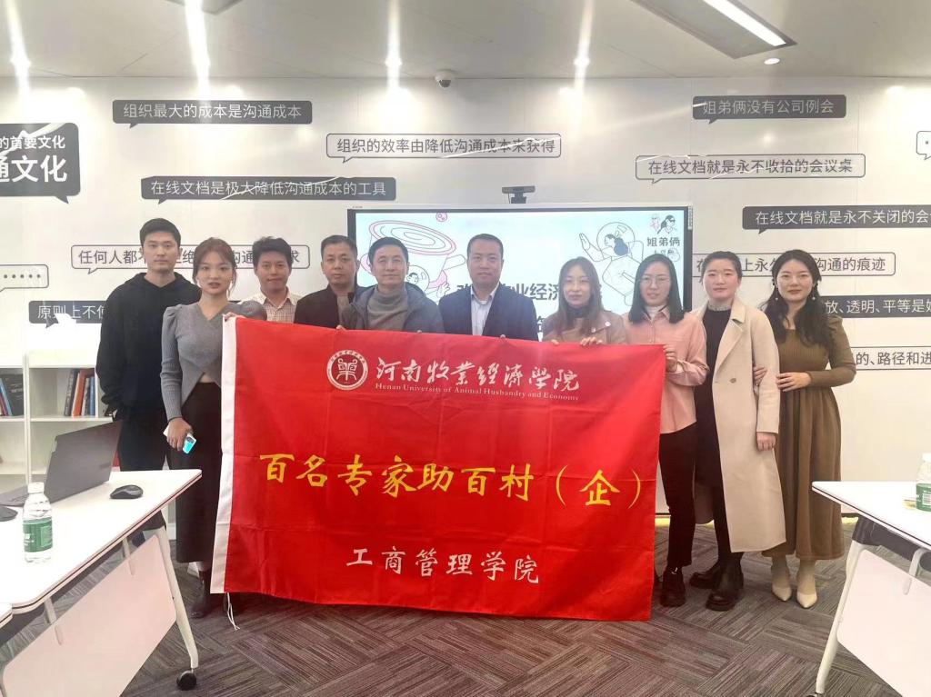 为进一步落实“双百工程”实施,助力企业发展和推进我院应用性科研驱动产教融与合课程建设,11月27日上午,ok138cn太阳集团古天乐副院长陈先锋一行6人赴姐弟餐饮管理有限公司总部调研。姐弟餐饮管理有限公司总经理冯太祥、市场部总监宋留欣等参加会谈。