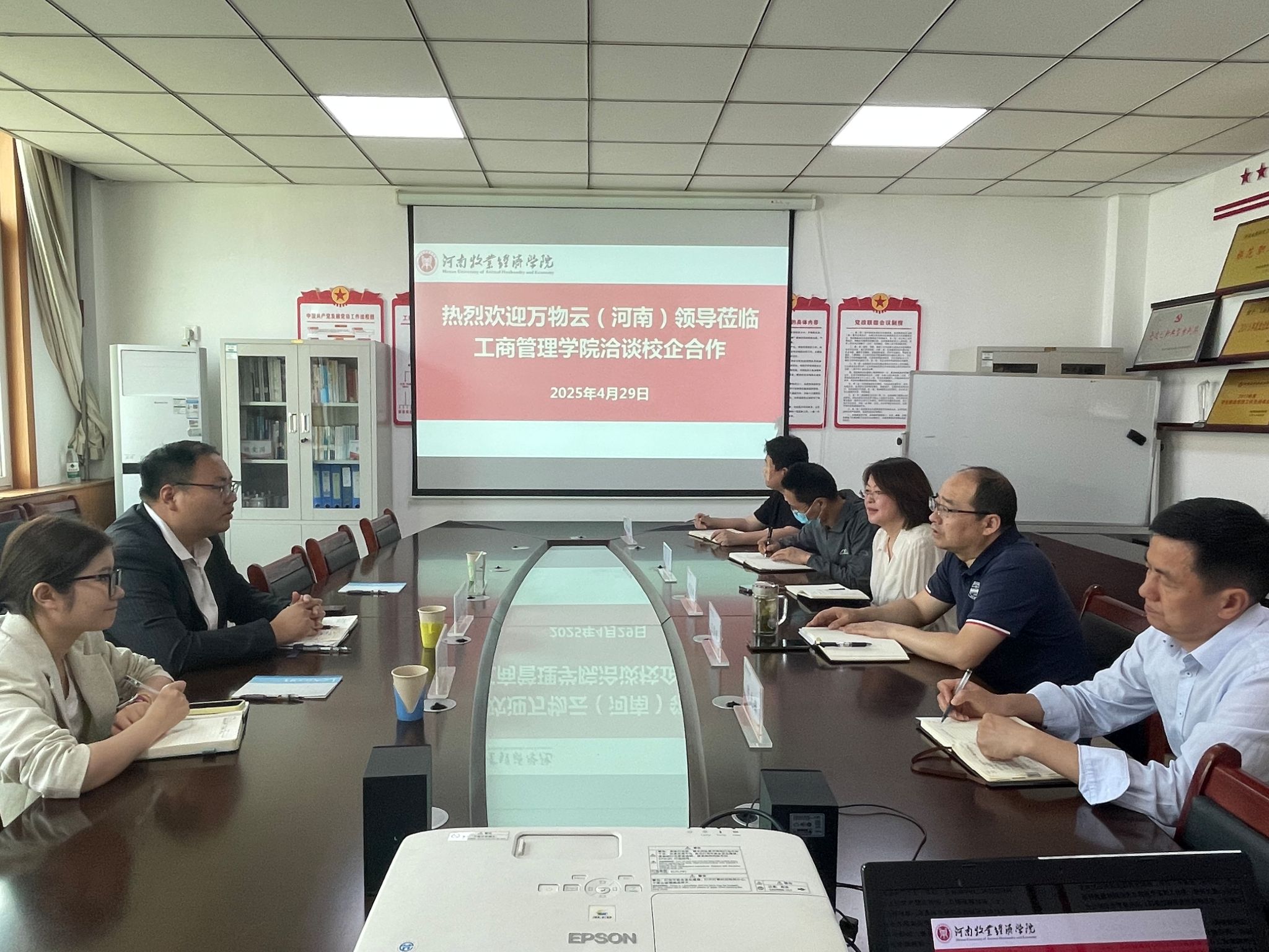 范森副院长从学科优势与人才培养角度提出合作愿景。学院将依托重点学科与万物云(河南)共建校企研发中心,联合开发数字化管理课程、编写行业案例库,并探索“企业订单班”“双师型课堂”等育人模式,实现“教学—实践—就业”全链条贯通。陈先锋副院长结合实践教学提出具体方案。短期以“企业项目进课堂”“师生团队驻点实训”为抓手,提升学生解决实际问题的能力;中长期计划联合申报产教融合项目,推动科研成果向行业标准转化,为企业数字化转型提供智力支持。