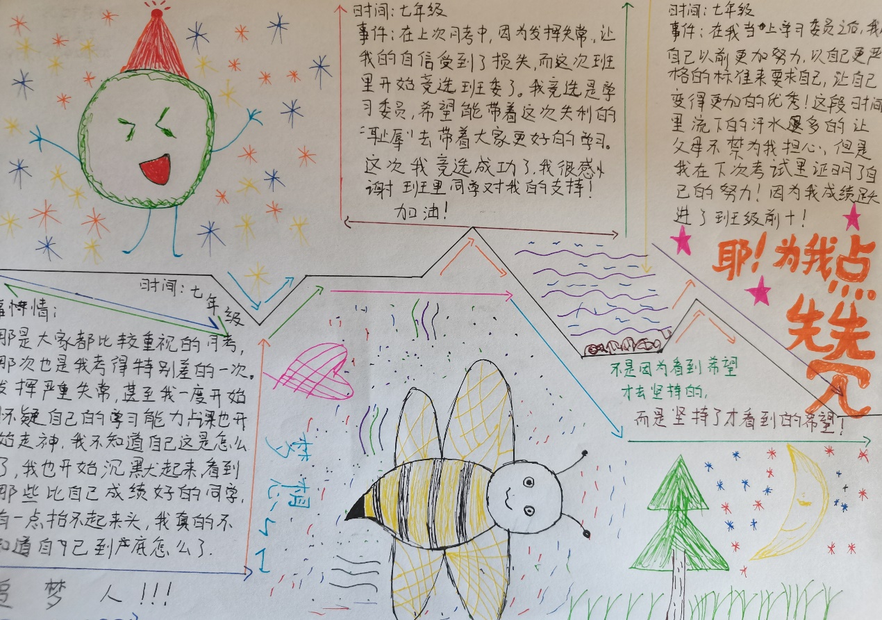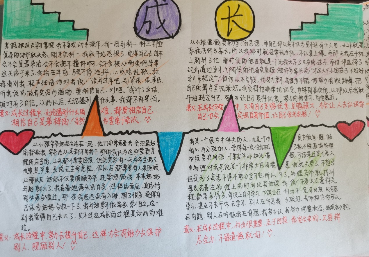 本次系列活动参赛作品以曲线为主,并附上文字说明,向上凸出代表是“激励”式的成长,向下“凹”代表是“挫折”式的成长,作品由我院心理健康服务中心干事分别在3月,4月,5月初在红色花蕊收集。