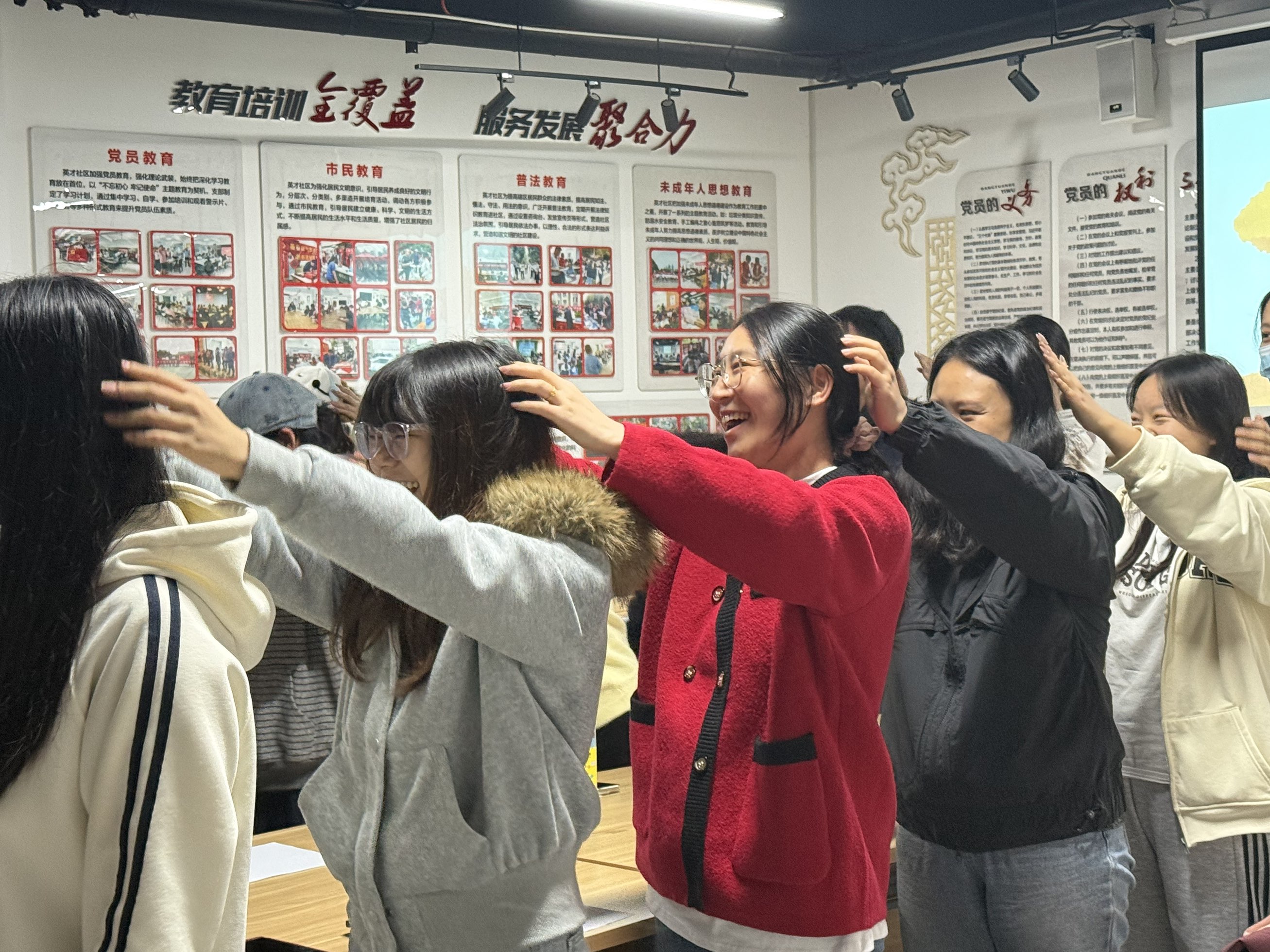 本次活动特别邀请了高校心理学专业专家讲师到场。讲师以“日常压力的识别与疏导”为核心,通过生动的案例讲解,帮助同学和居民认识常见的心理压力信号,并分享了深呼吸放松法、情绪日记法等实用的调节技巧。在互动环节,工作人员组织大家开展“情绪盲盒”“人雨画”等趣味游戏,同学和居民们在协作与交流中释放了负面情绪,现场笑声不断。参与活动的社区居民表示:“平时帮儿女带孩子压力挺大,今天听了讲座、玩了游戏,感觉心里轻松多了,还认识了不少邻居和大学生,特别有意义。”学院同学也说道:“通过游戏学会了怎么跟身边人更好地沟通,以后遇到学业或生活中的烦心事,也知道该怎么调节了。”