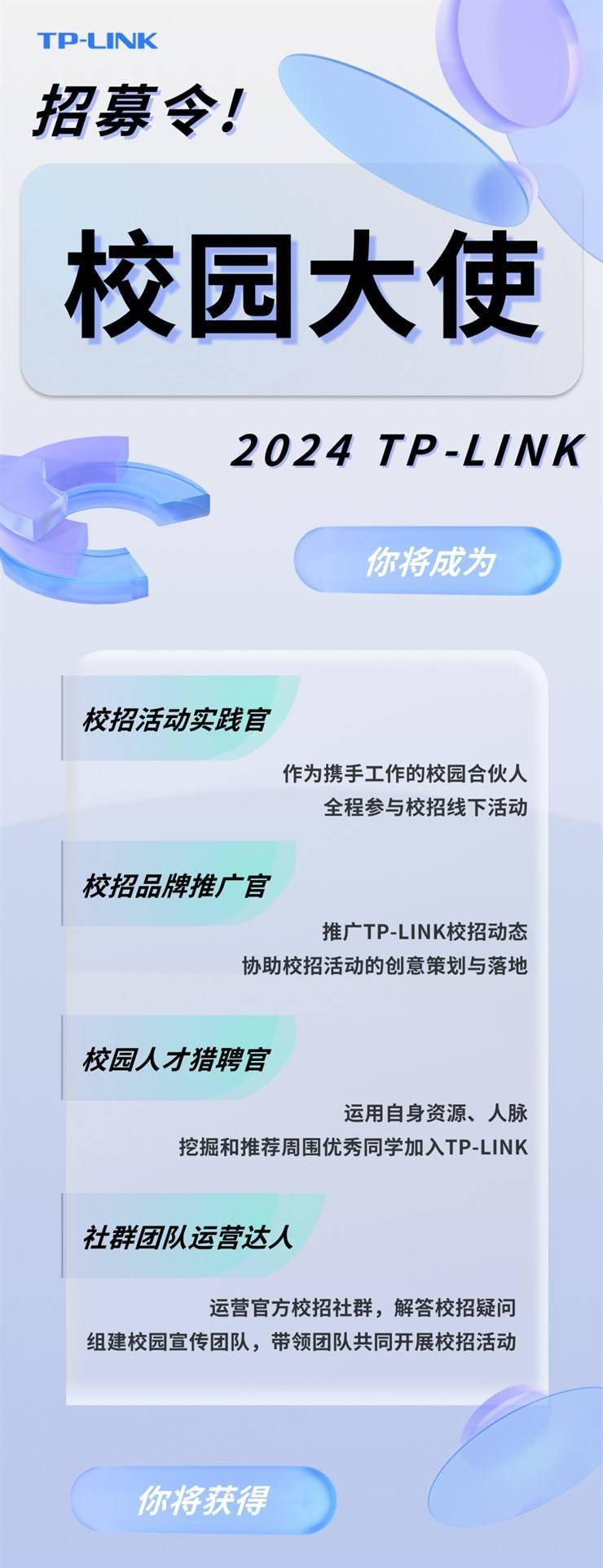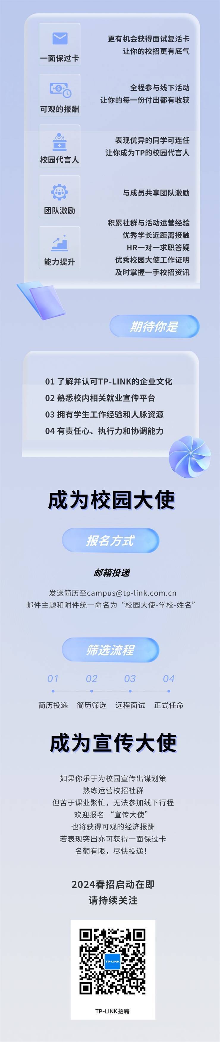 招聘单位:TP-LINK 2024届春季校园大使招募令