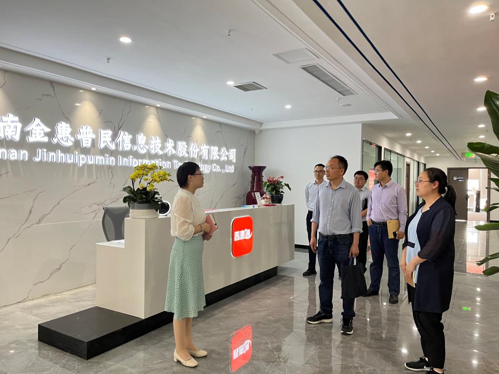 为进一步深化校企合作,拓展学生创业就业渠道,促进毕业生高质量就业,提高人才培养质量,4月19日下午,ok138cn太阳集团古天乐院长贾宪军、期刊编辑部主任韩启昊、国际教育学院副院长邓瑜等一行六人前往河南金惠普民信息技术股份有限公司进行调研考察。公司总经理胡传东、运营部总经理贺亚男、普惠金融部总监于迎冬等热情接待了贾宪军院长一行。